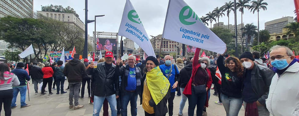 A EngD estava presente se somando a dezenas de organizações democráticas de jornalistas, economistas, médicos, com centrais e entidades sindicais, movimentos de moradia, trabalhadores sem terra, movimento de mulheres, entre outros.